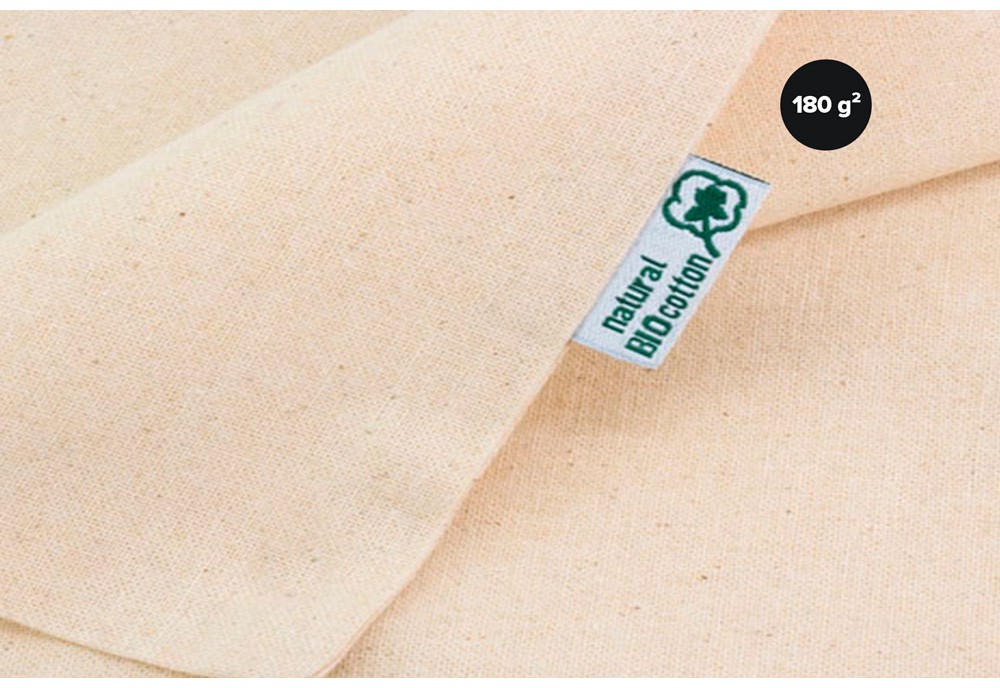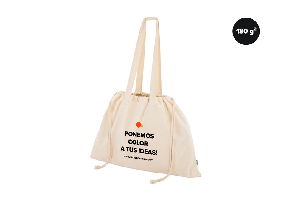 Bolsas de gran capacidad de almacena con asas largas disponible en color crudo, Fabricada en algodón orgánico, incluye un cordón para ajustar cierre. Etiqueta lateral (Natural Bio cotton)